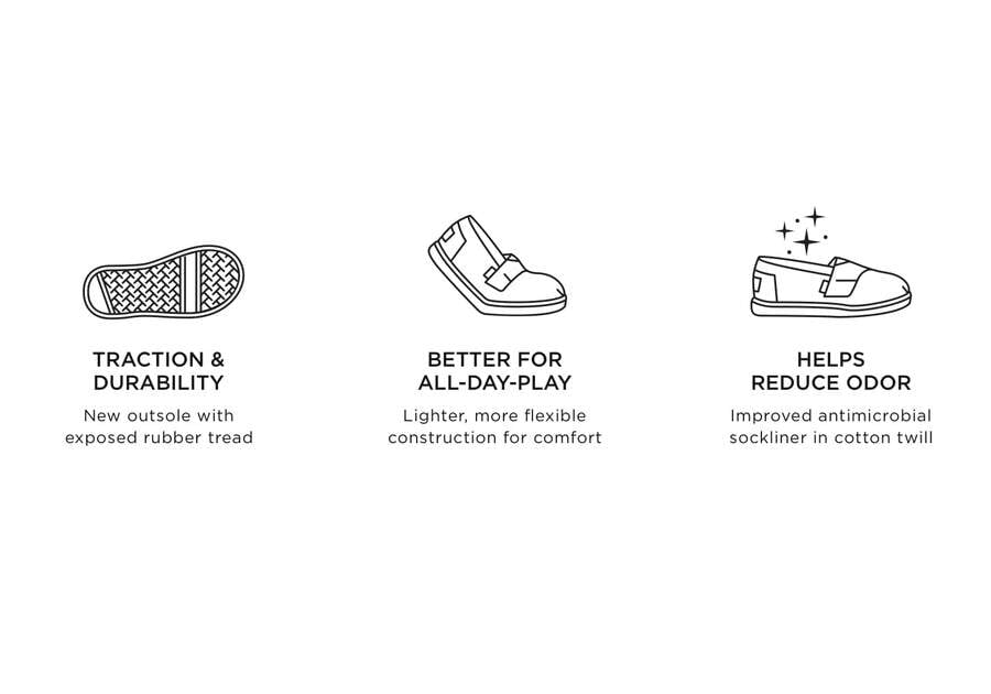 Our iconic Alpargata slip-on fit for kids classic, comfy, and working hard to create a better, brighter future.