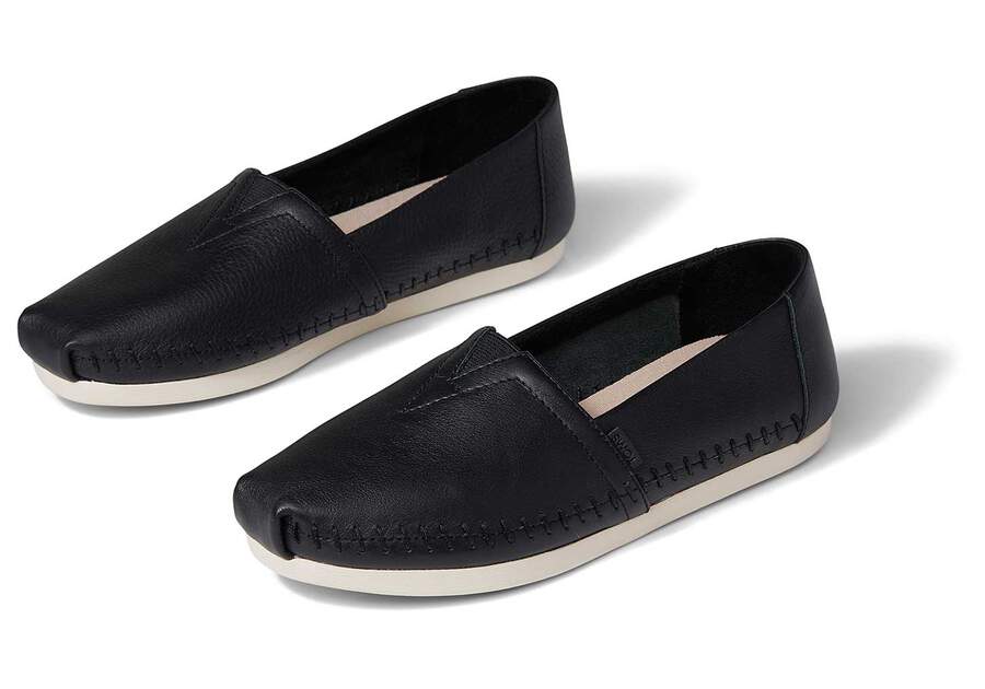 Toms Black Alpargata Leather Women's Alpargatas | UAE751-196