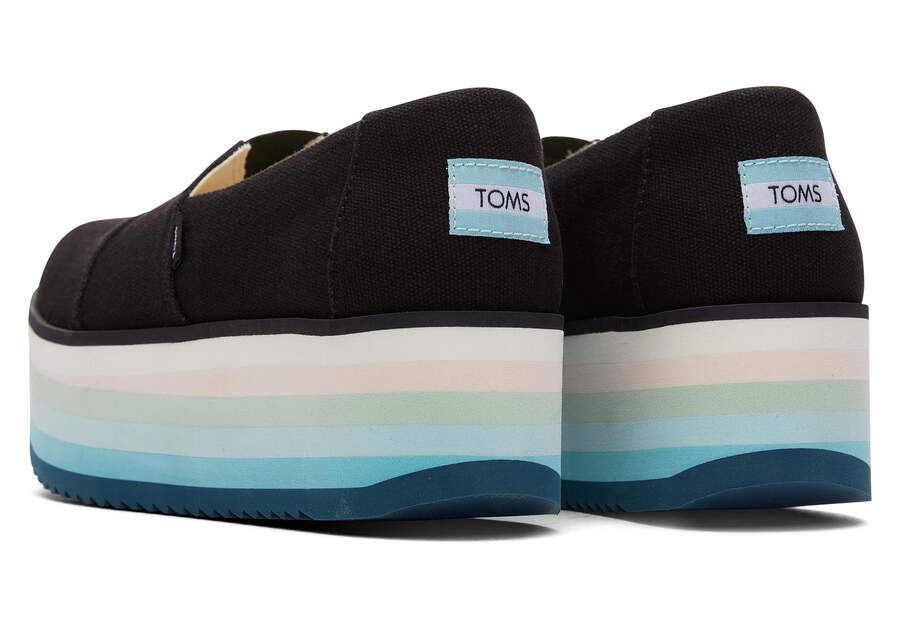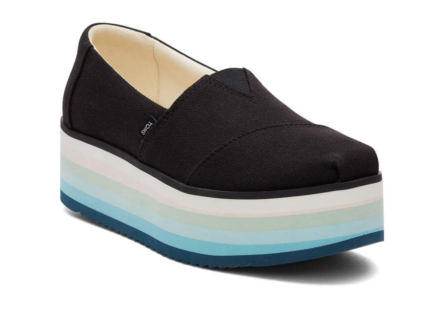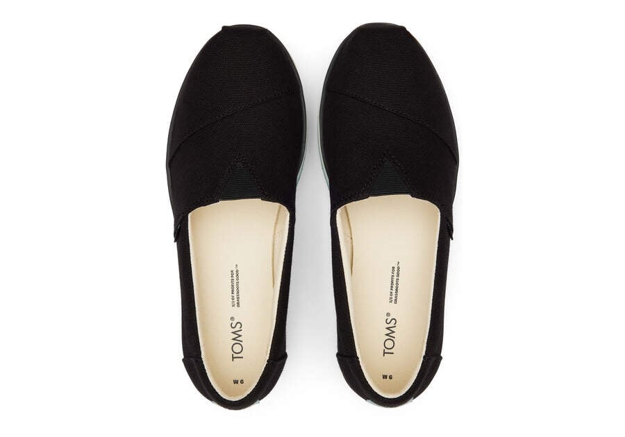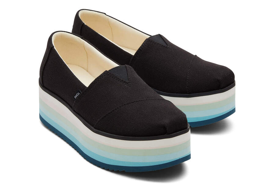 :: Toms Black Canvas Alpargata Platform Espadrille Women's Platform Shoes | UAE553-417