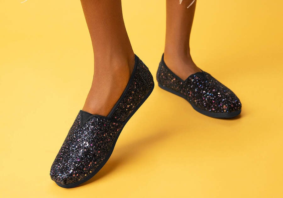 :: Toms Black Glitter Alpargata Glitter Women's Alpargatas | UAE754-645