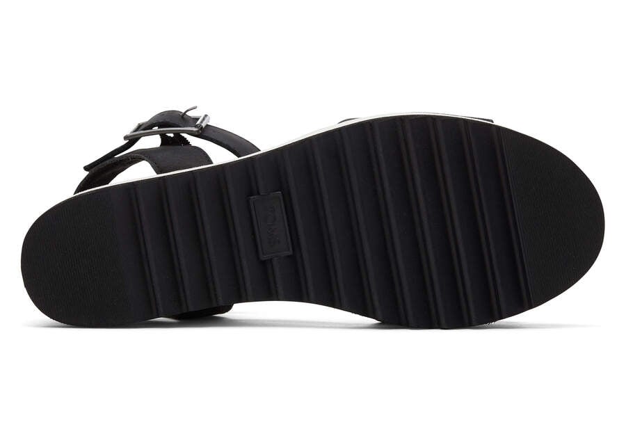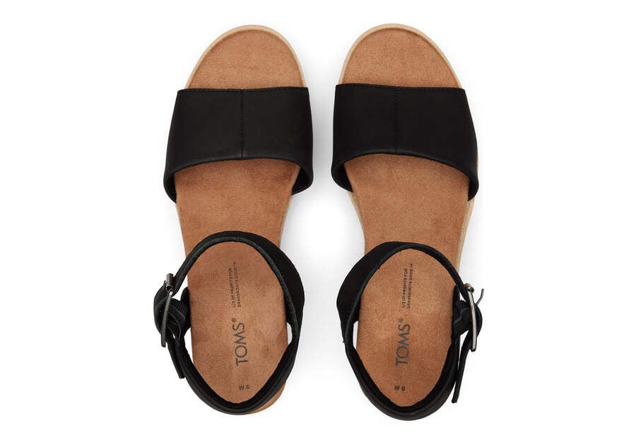 :: Toms Black Leather Diana Leather Wedge Sandal Women's Sandals | UAE047-997
