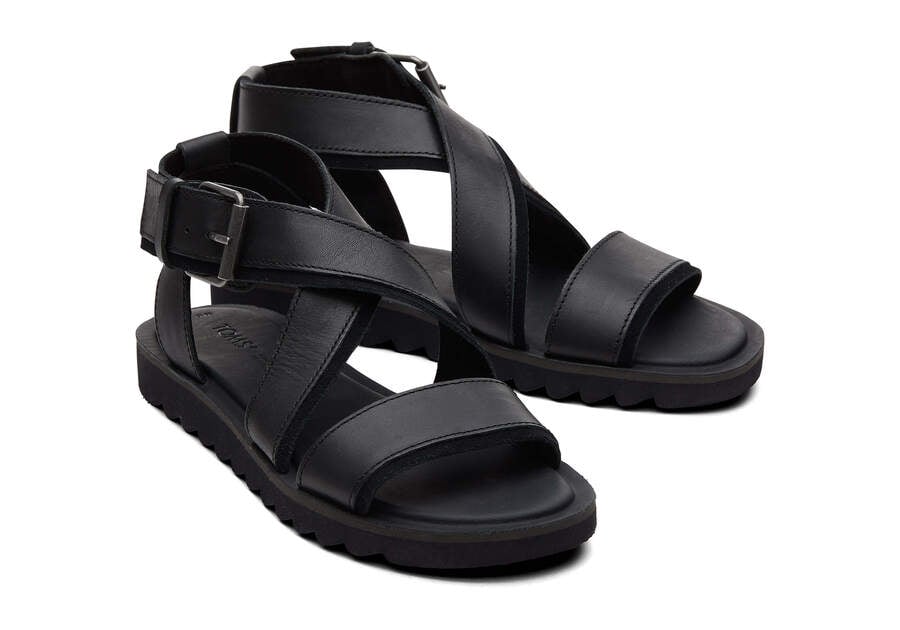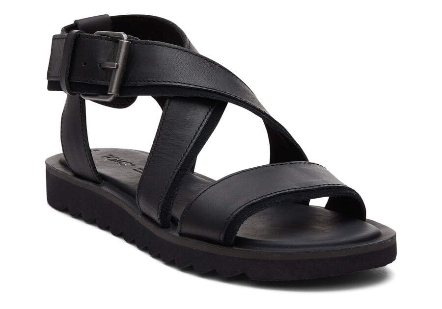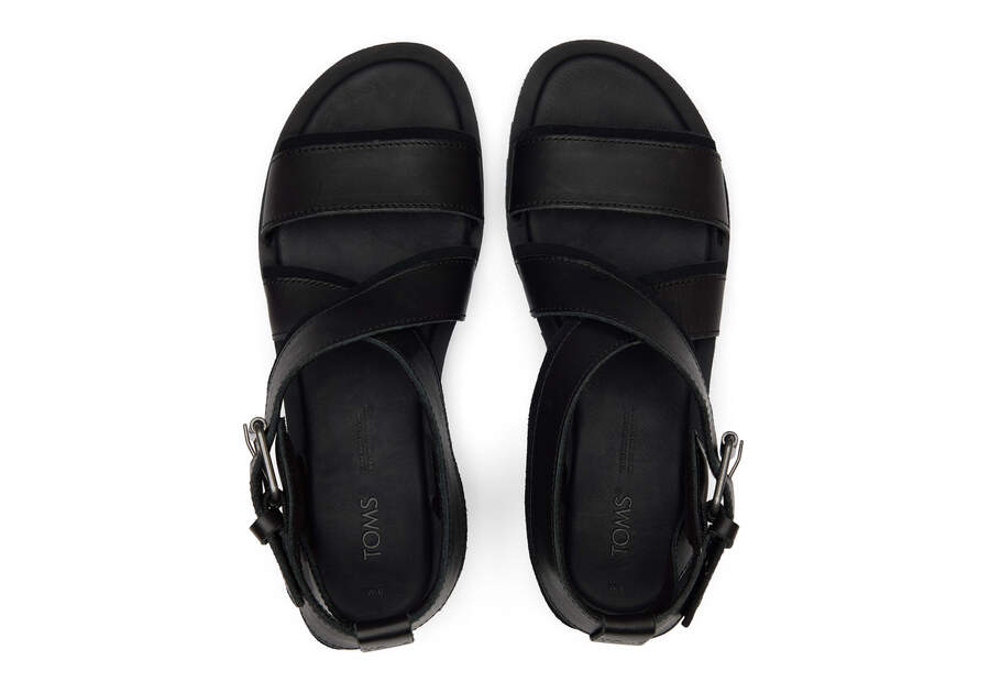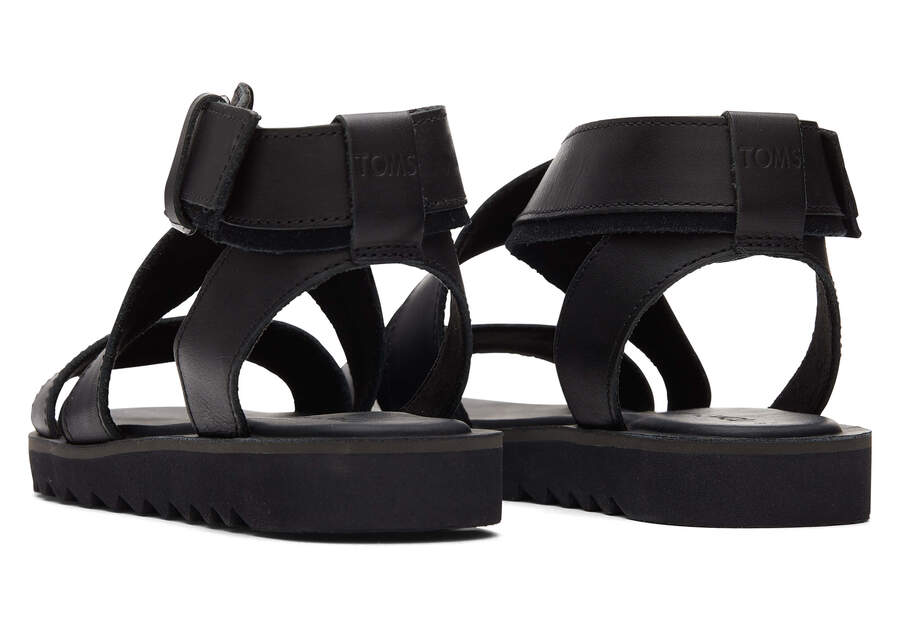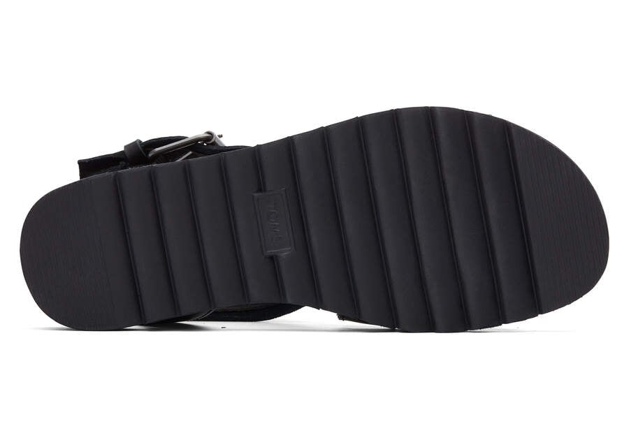 :: Toms Black Leather Suede Sidney Tread Sandal Women's Sandals | UAE139-308