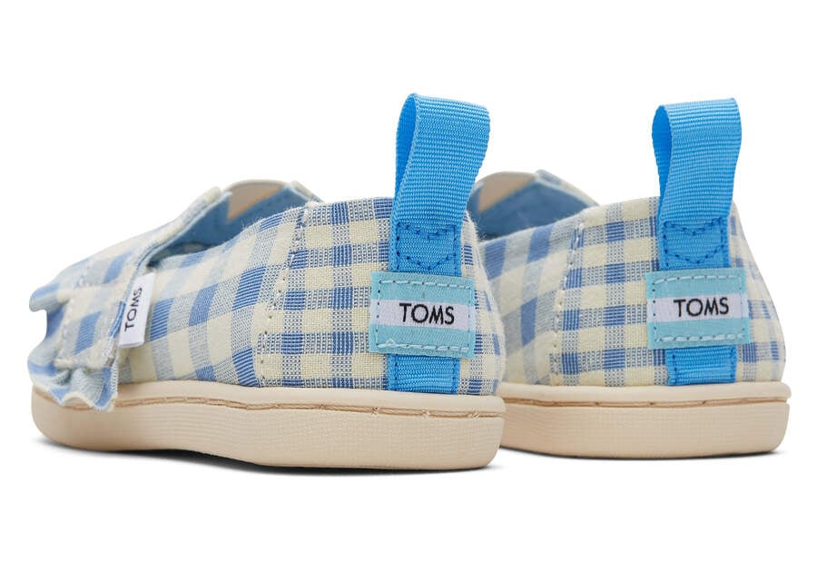 :: Toms Blue Gingham Tiny Alpargata Gingham Ruffle Kids' Alpargatas | UAE918-141