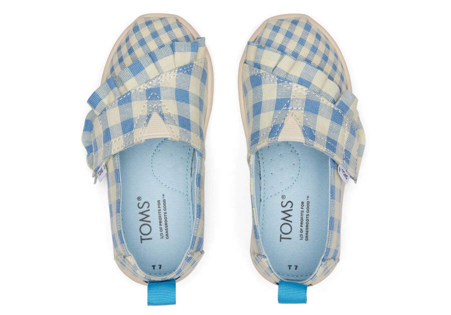 Toms Blue Gingham Tiny Alpargata Gingham Ruffle Kids' Alpargatas | UAE918-141