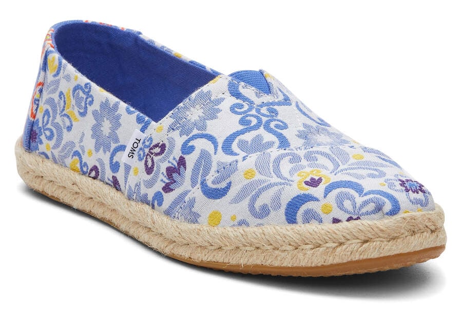 Toms Blue Multi Mediterranean Tiles Jacquard Alpargata Rope Espadrille Women's Espadrilles | UAE753-703