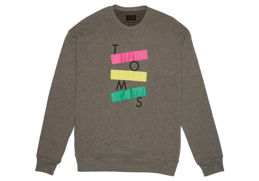 :: Toms Dark Heather Grey Stacked Logo Crew Fleece Women's Fleece | UAE661-619