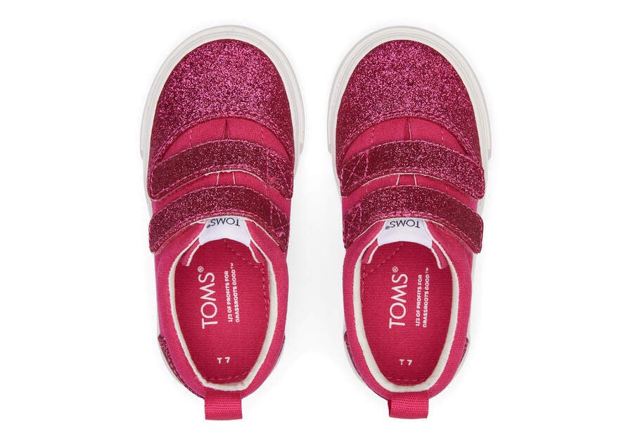 :: Toms Dark Pink Tiny Fenix Double Strap Iridescent Glimmer Kids' Sneakers | UAE176-228
