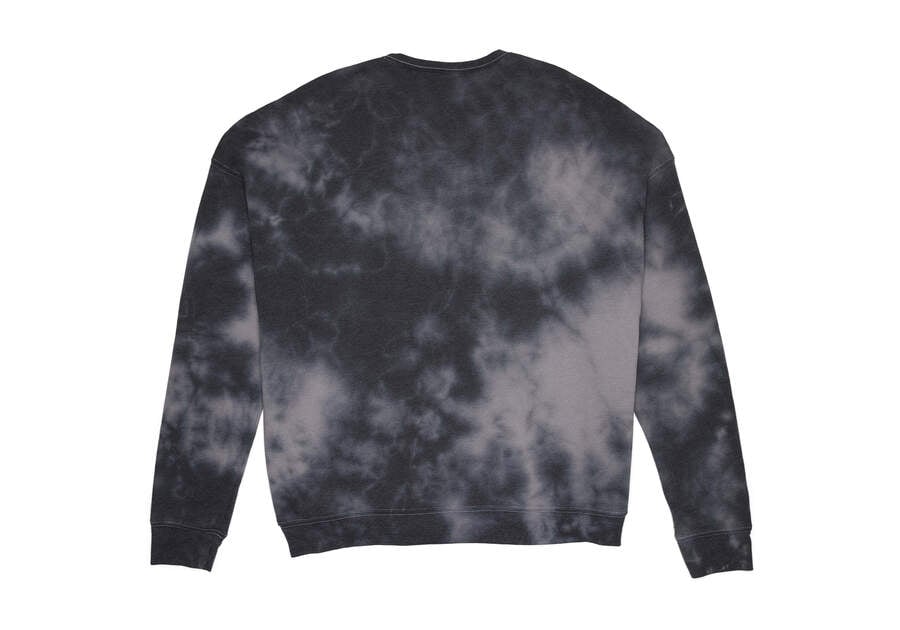 Toms Grey Black Dye Stacked Logo Crew Fleece Women's Fleece | UAE585-622