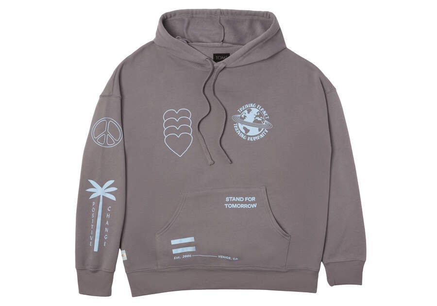 The coziest way to make an impact. This incredibly soft unisex pullover hoodie features convenient kangaroo pockets, dyed-to-match drawcords and ribbed cuffs and waistband. Designed with custom TOMS graphics and made with 52% Airlume combed, ring-spun cotton and 48% polyester fleece.