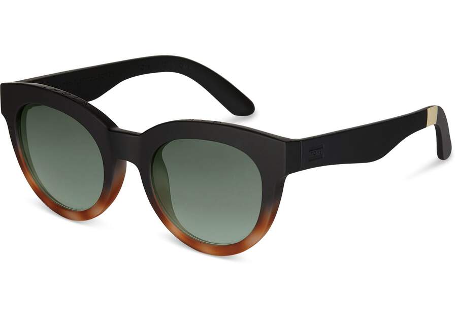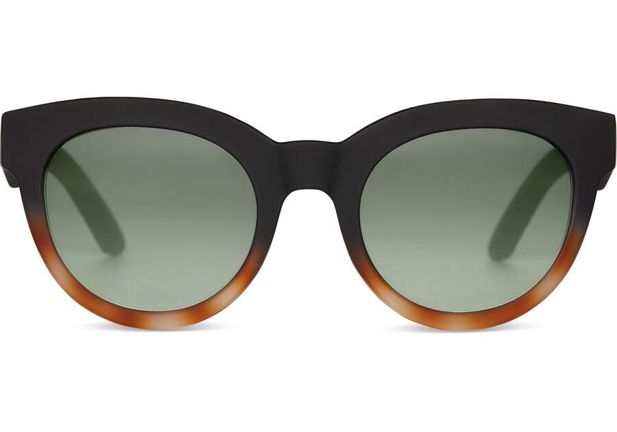 :: Toms Matte Black - Glass Bottle Green Florentin Women's Sunglasses | UAE971-688
