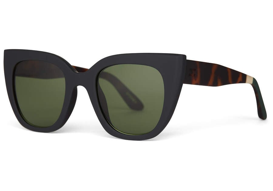:: Toms Matte Black Tortoise- Bottle Green Polar Sydney Women's Sunglasses | UAE969-485