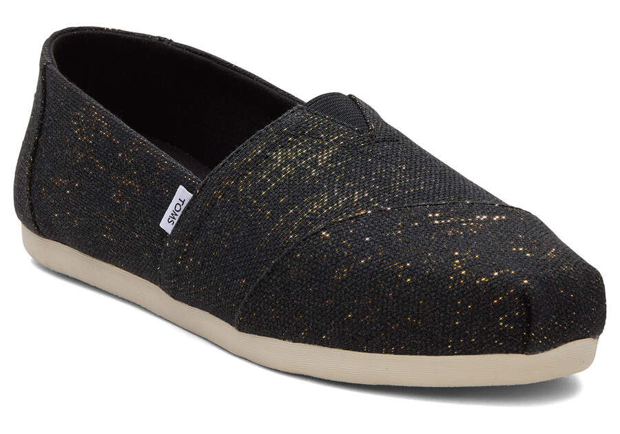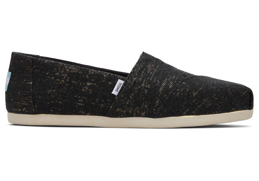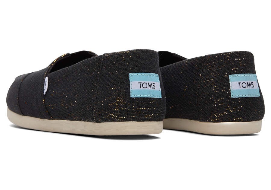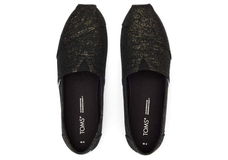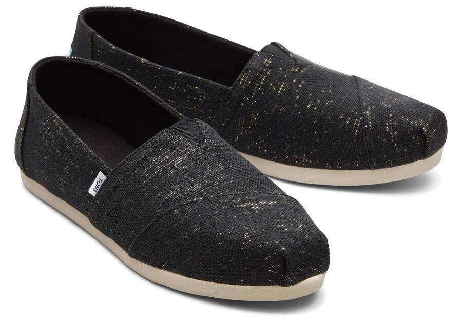 :: Toms Metallic Black Alpargata Metallic Linen Women's Alpargatas | UAE864-559