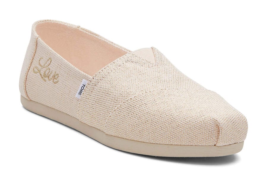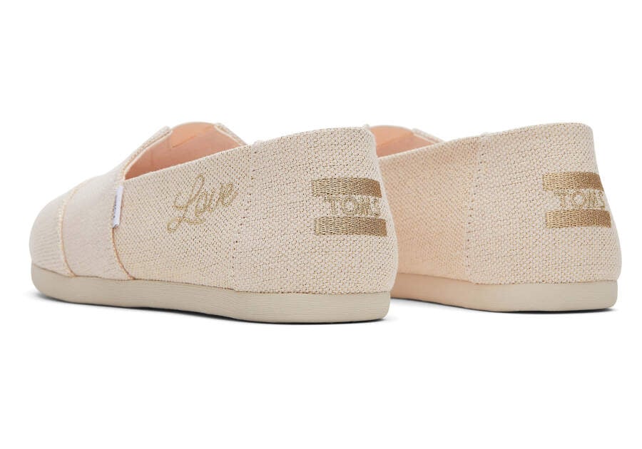 Bring a subtle yet chic touch to your everyday outfits with our exclusive metallic linen Alpargata slip-on that delivers style, comfort and the cutest embroidered "love" details.