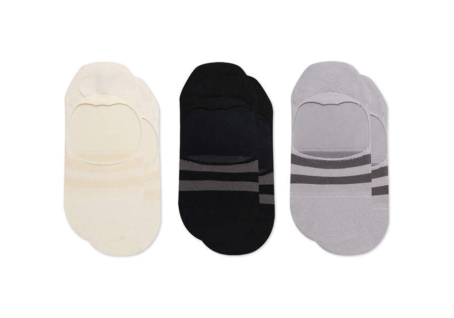 :: Toms Mixed Grey Stripes Ultimate No Show Socks Mixed Grey 3 Pack Men's Socks | UAE835-060
