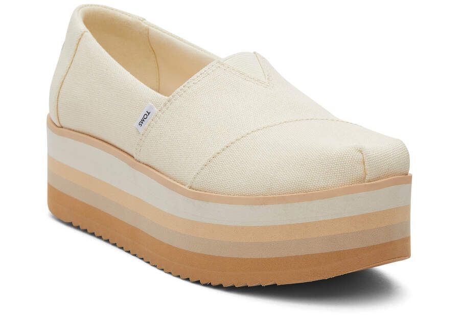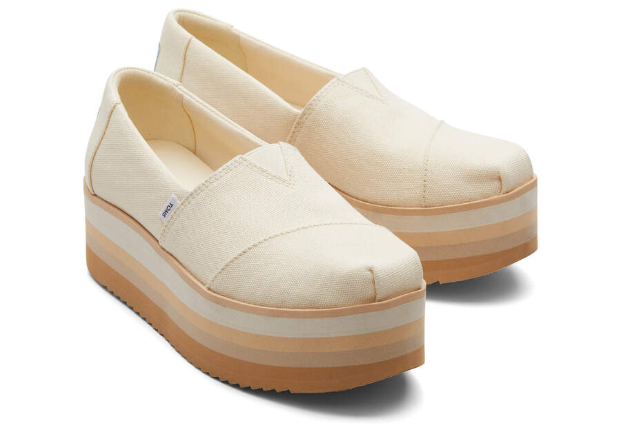 :: Toms Natural Canvas Alpargata Platform Espadrille Women's Platform Shoes | UAE078-125