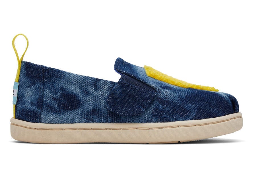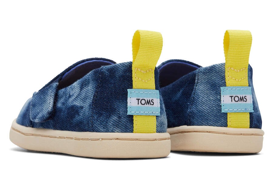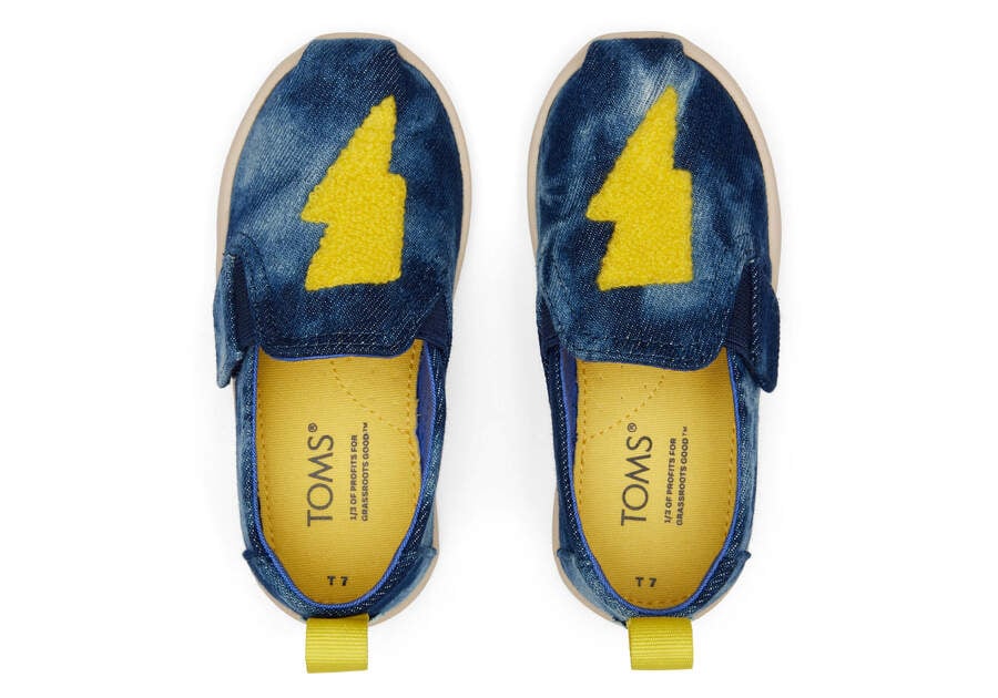 :: Toms Navy Washed Denim Tiny Alpargata Twin Gore Washed Denim Ligthning Bolt Kids' Alpargatas | UAE905-591