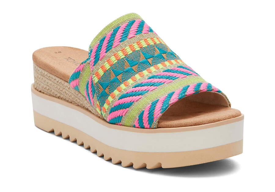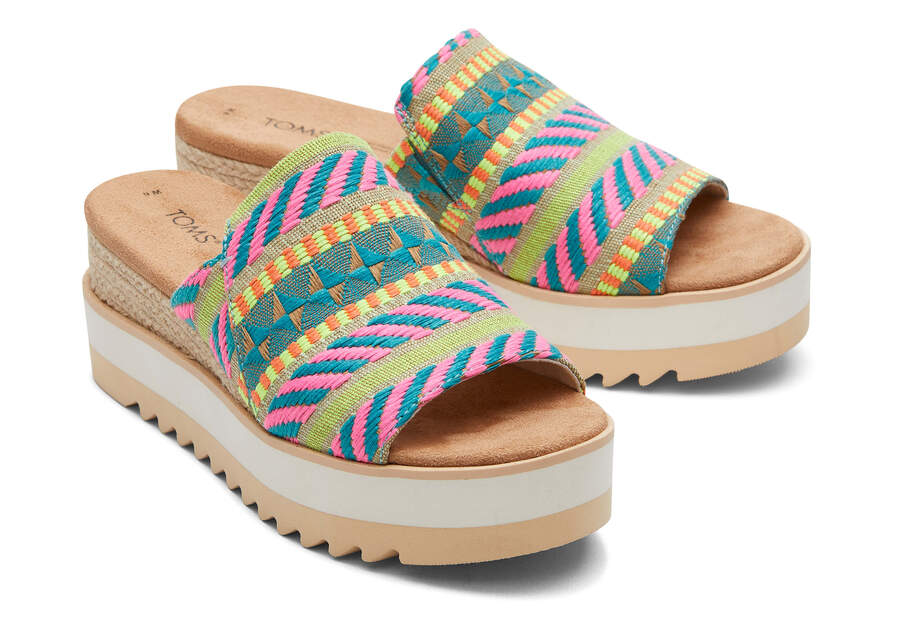Toms Neon Pink Global Jacquard Diana Mule Sandal Women's Sandals | UAE357-642