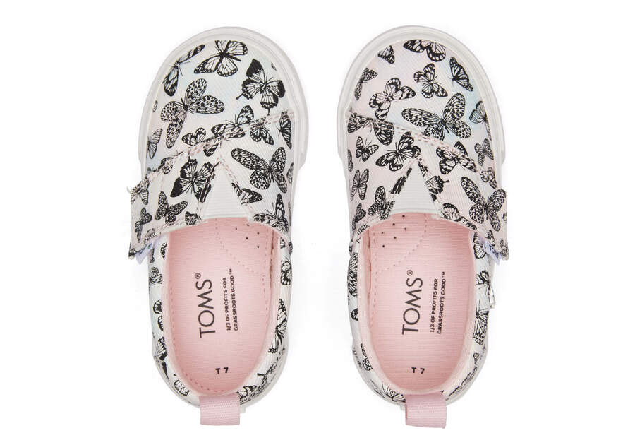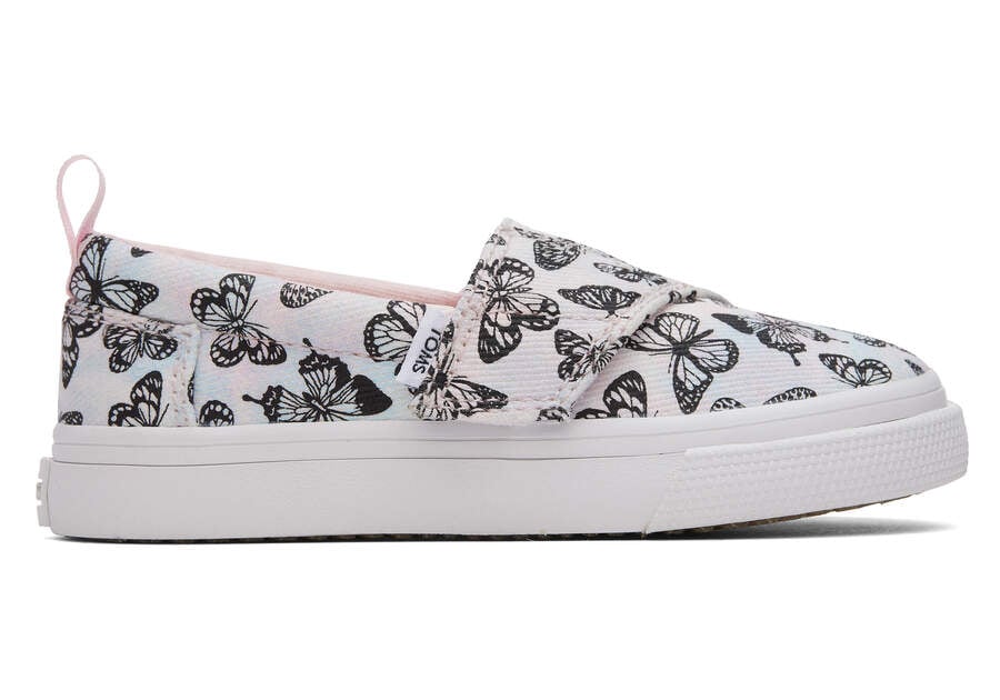 :: Toms Pastel Pink Tiny Fenix Slip-On Butterflies Tie Dye Twill Kids' Sneakers | UAE970-239