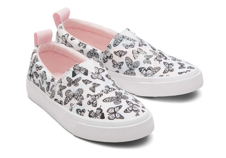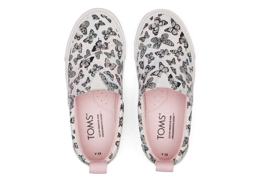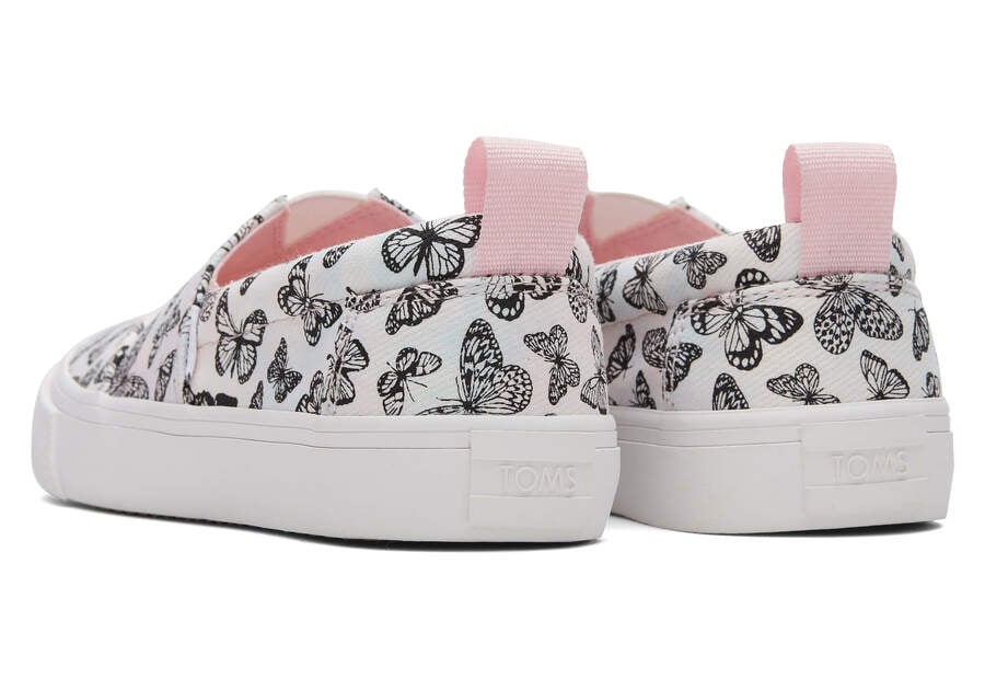 :: Toms Pastel Pink Youth Fenix Slip-On Butterflies Tie Dye Twill Kids' Sneakers | UAE925-006