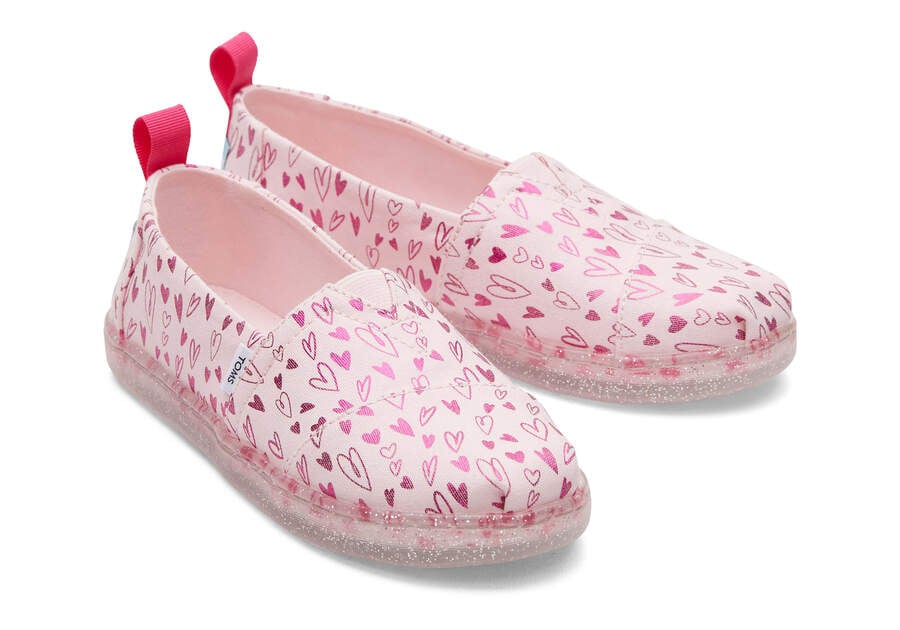 Toms Pink Hearts Youth Alpargata Foil Hearts Print Kids' Alpargatas | UAE642-932