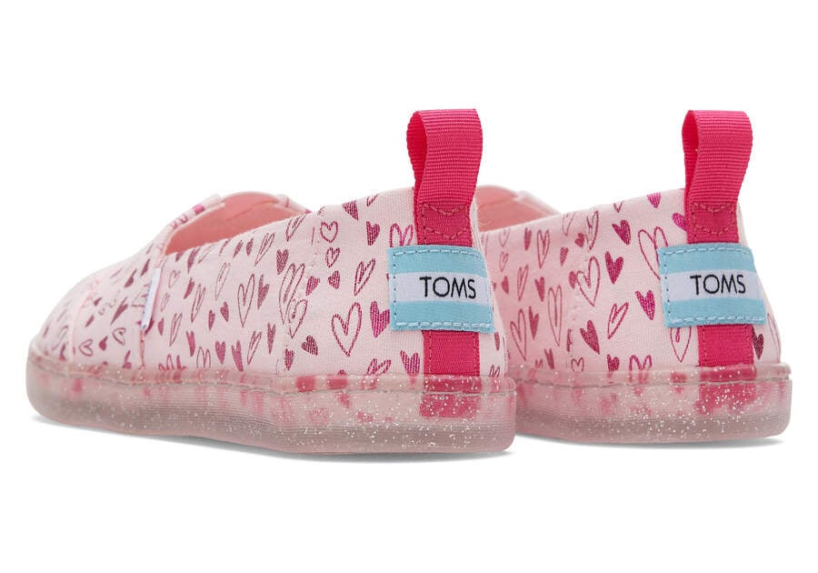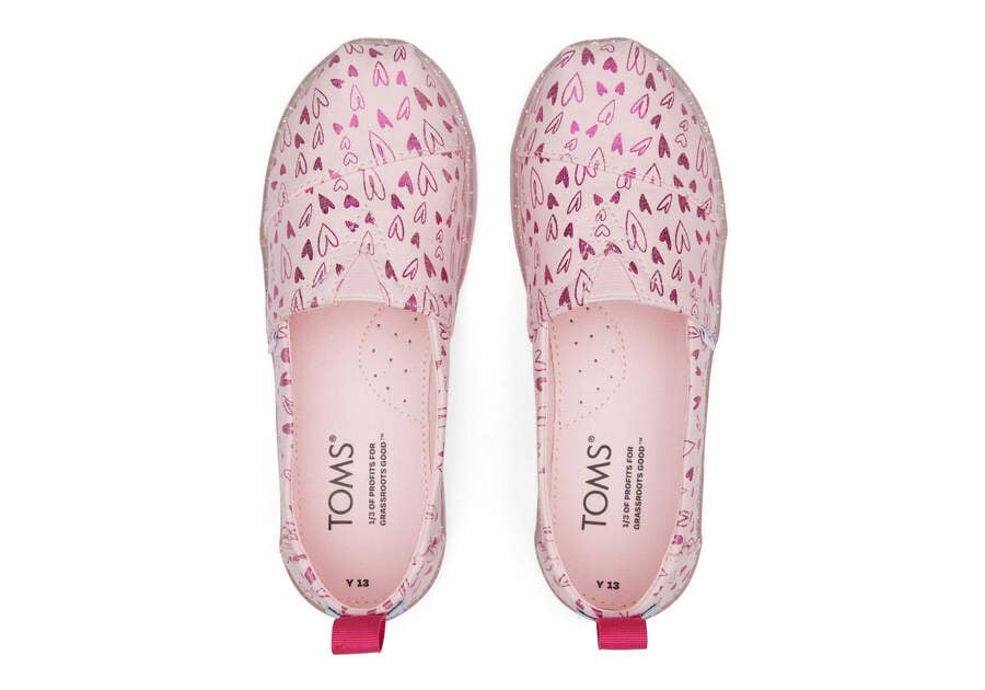 :: Toms Pink Hearts Youth Alpargata Foil Hearts Print Kids' Alpargatas | UAE642-932
