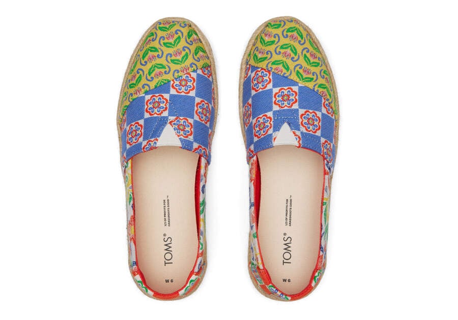 :: Toms Red Multi Mediterranean Tiles Jacquard Alpargata Rope Espadrille Women's Espadrilles | UAE137-497