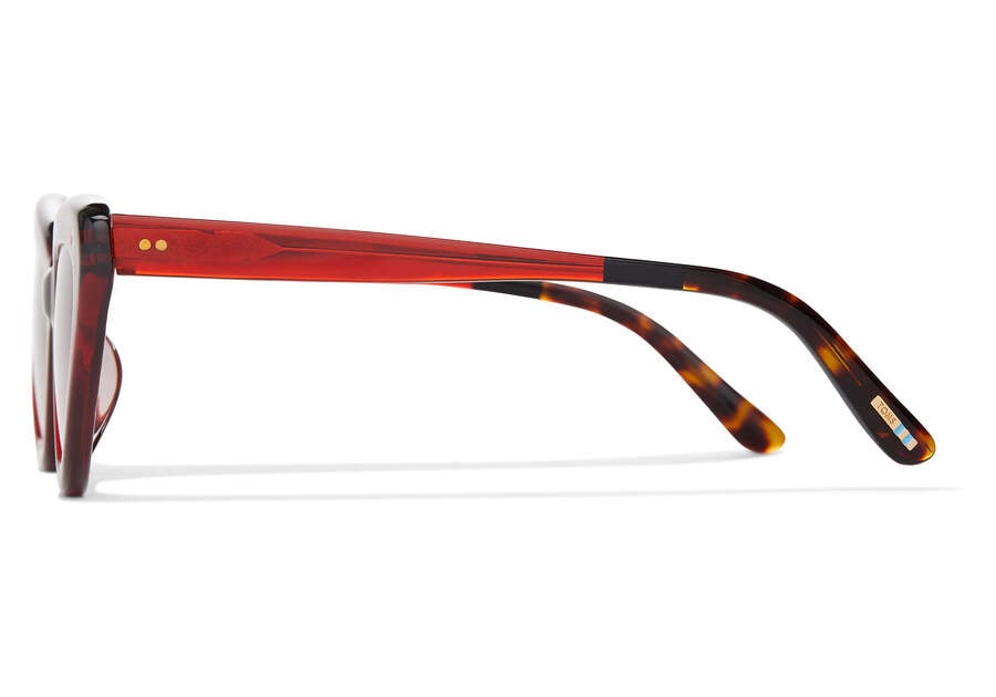 Leave it to Willow, these sleek cat eye sunglasses with a red acetate frame and a sloping browline, to add some attitude to any ensemble.