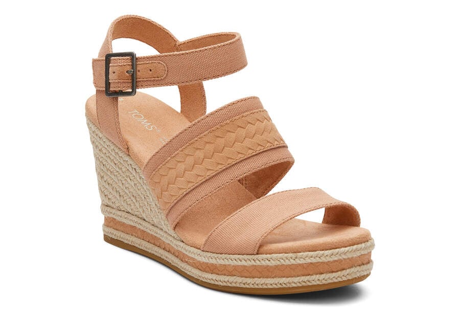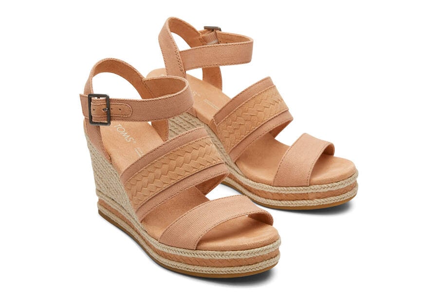 Toms Sandy Beige Canvas Madelyn Wedge Sandal Women's Sandals | UAE279-211