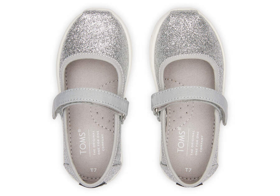 :: Toms Silver Iridescent Tiny Mary Jane Kids' Slip On | UAE744-797