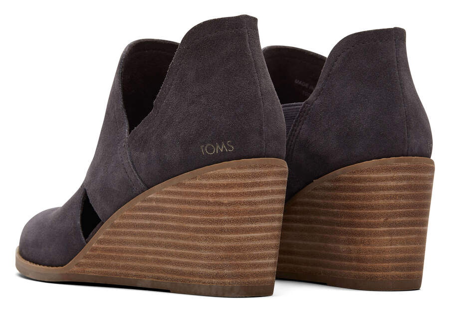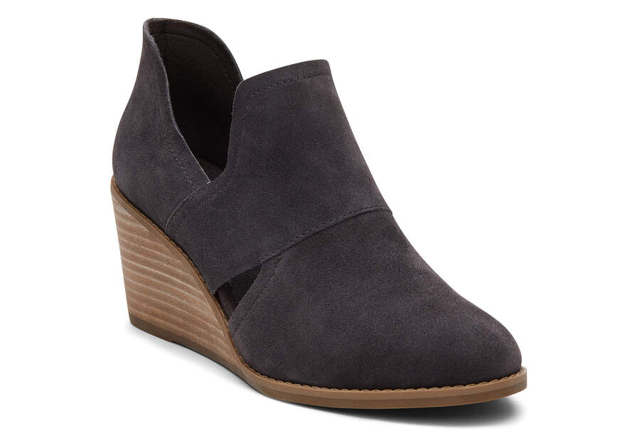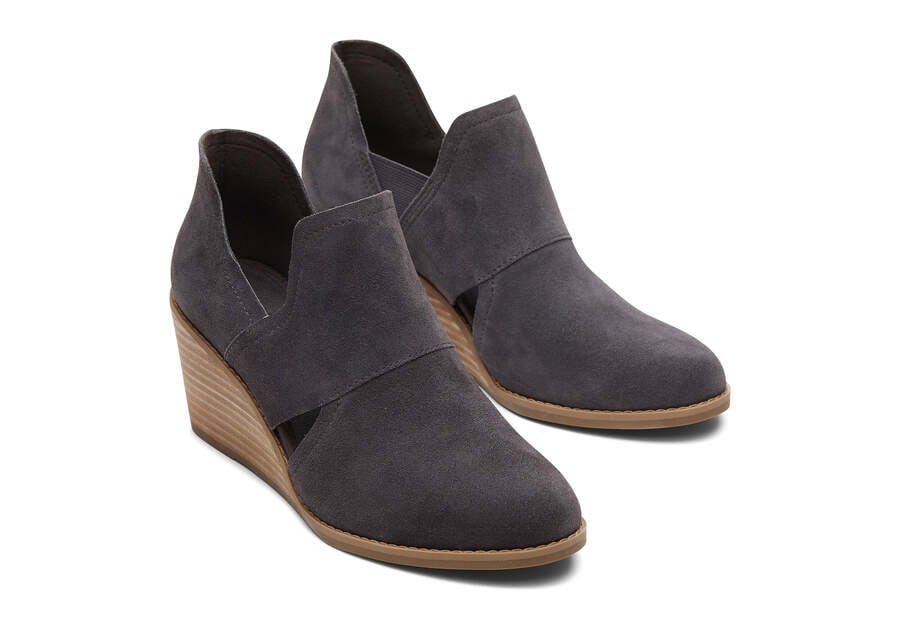 :: Toms Suede Grey Kallie Wedge Cutout Women's Booties | UAE821-976