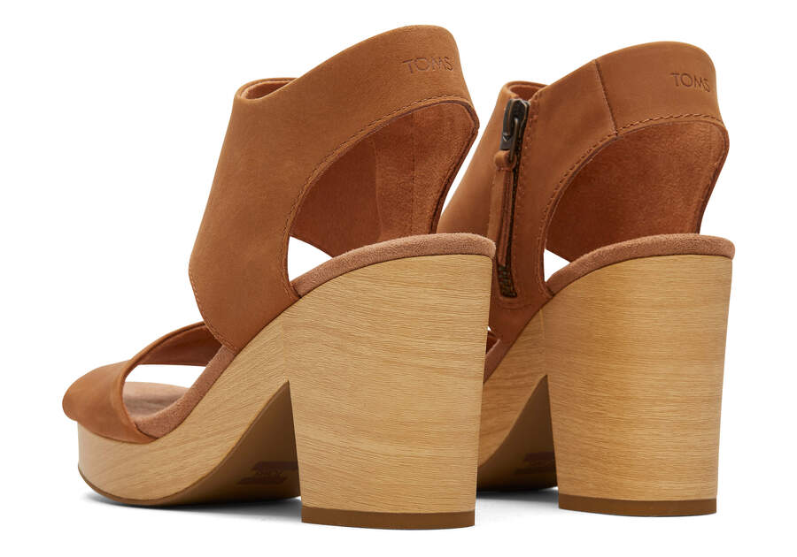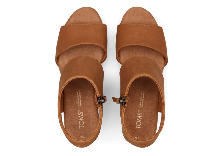 Toms Tan Leather Majorca Leather Platform Sandal Women's Sandals | UAE299-503