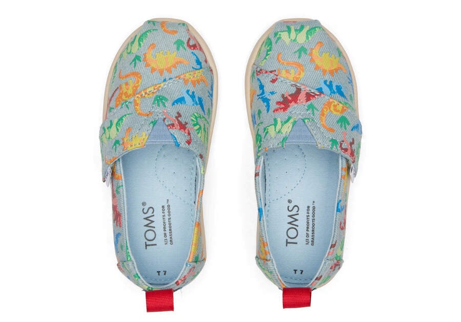 :: Toms Washed Denim Tiny Alpargata Washed Denim Dinomite Dinos Kids' Alpargatas | UAE733-155