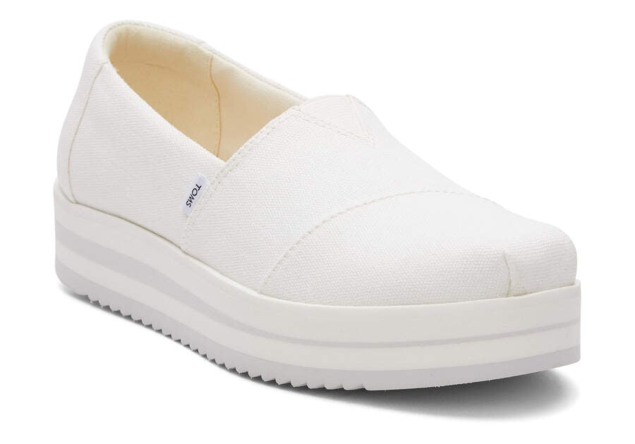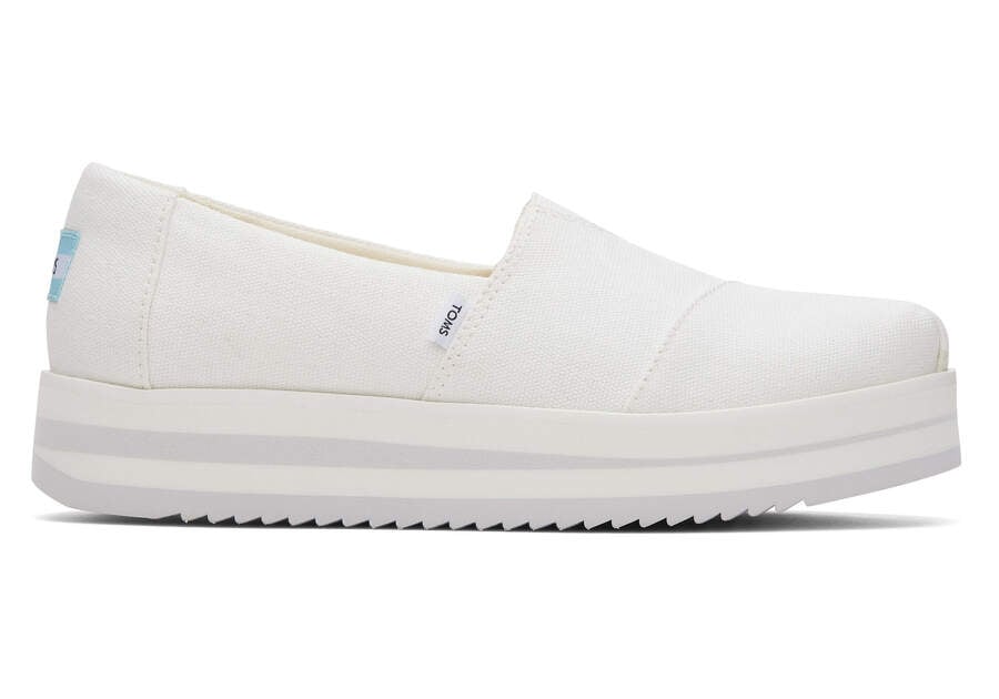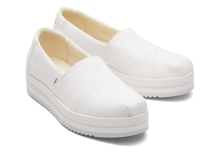 Toms White Canvas Alpargata Midform Espadrille Women's Platform Shoes | UAE232-333