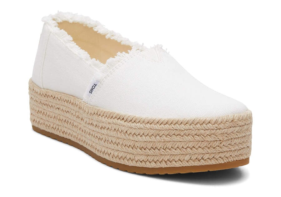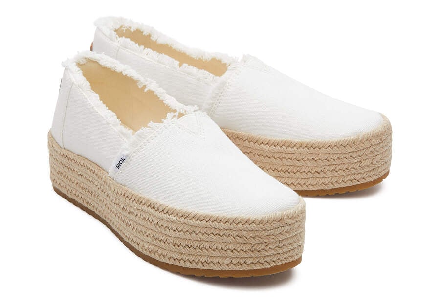 :: Toms White Canvas Valencia Platform Espadrille Women's Espadrilles | UAE295-366