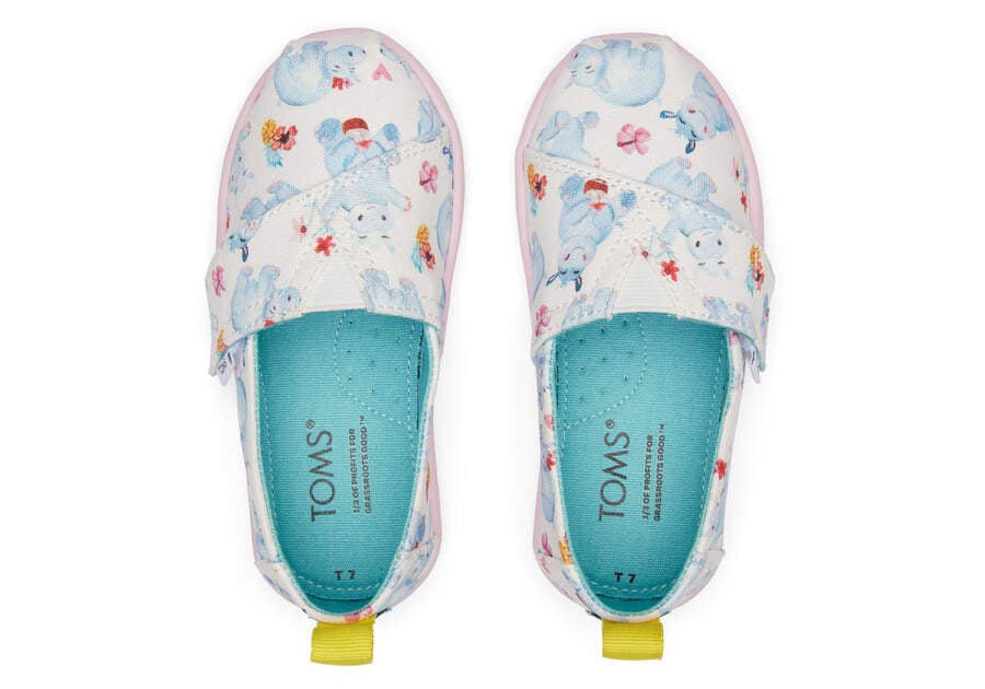 Toms White Tiny Alpargata Summer Hippos Kids' Alpargatas | UAE523-197